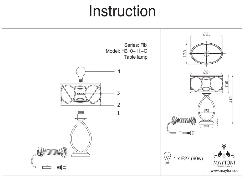 Art Deco stolní lampa Maytoni FIBI H310-11-G