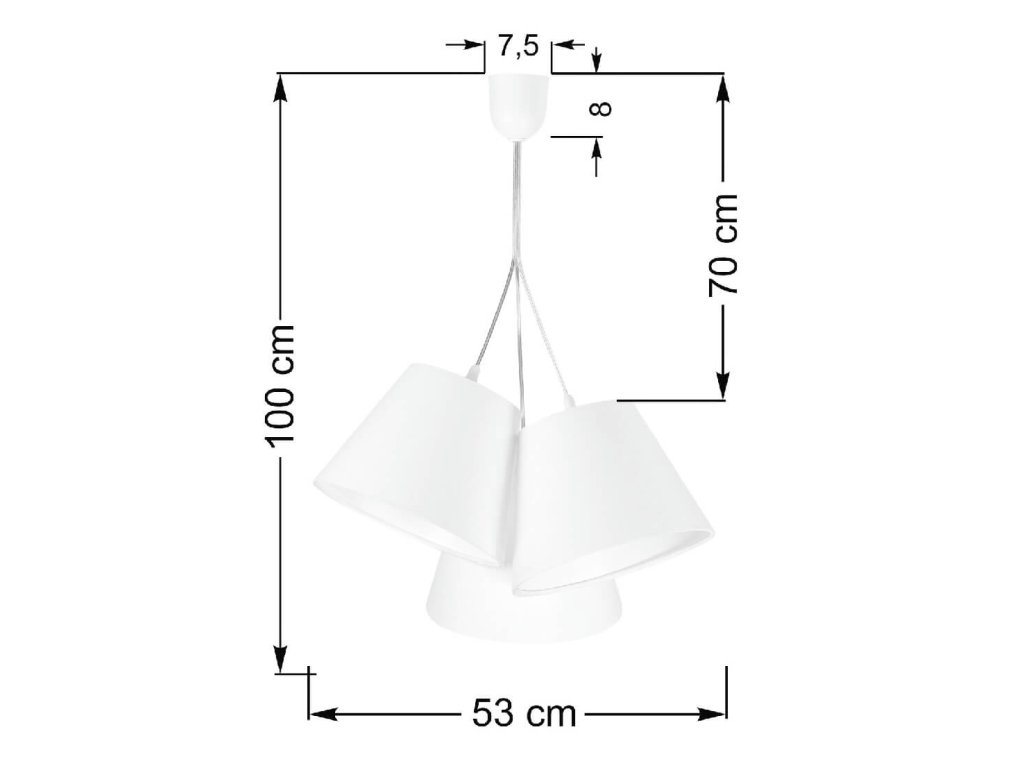Dětský lustr se třemi stínidly z velurové látky podlepené bílým plastem.