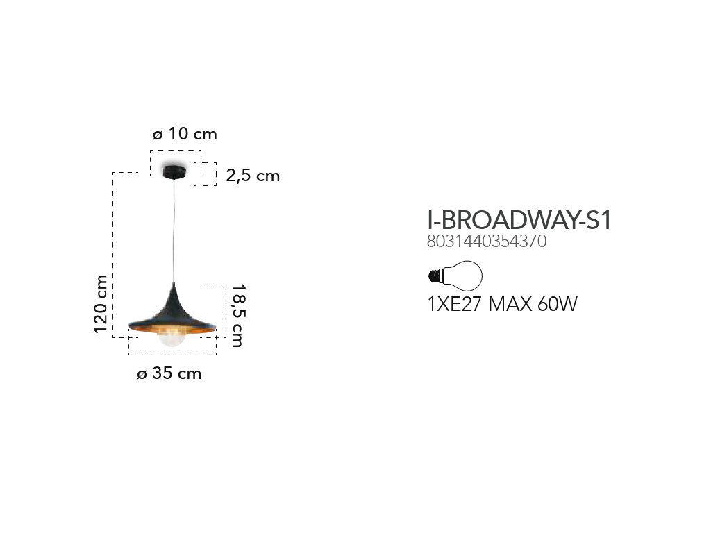 Černé kovové závěsné svítidlo I-BROADWAY-S1