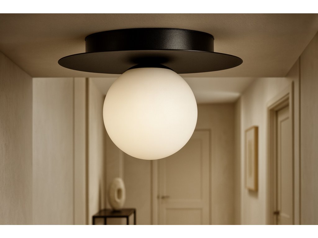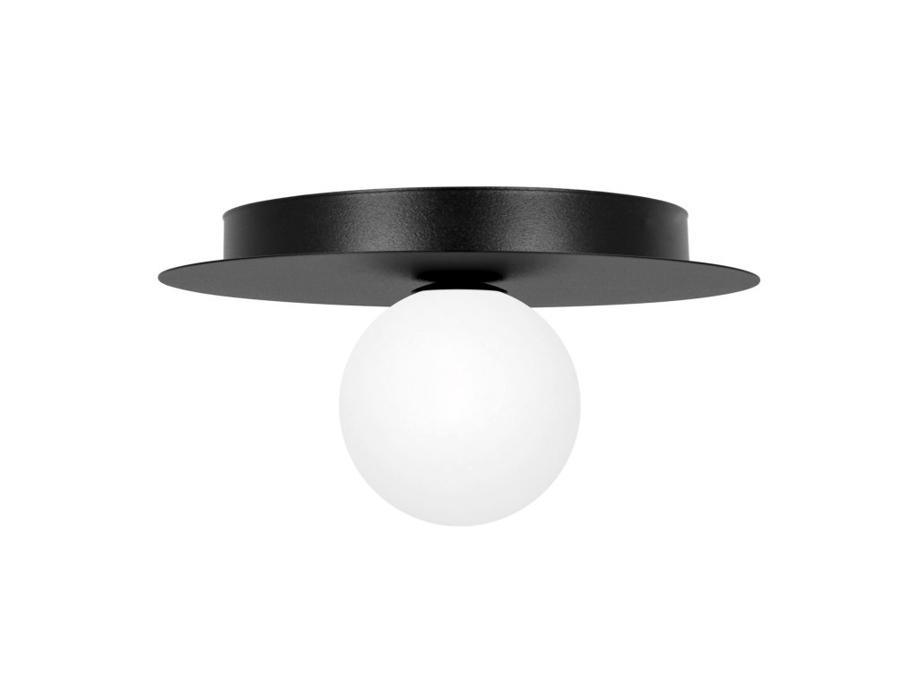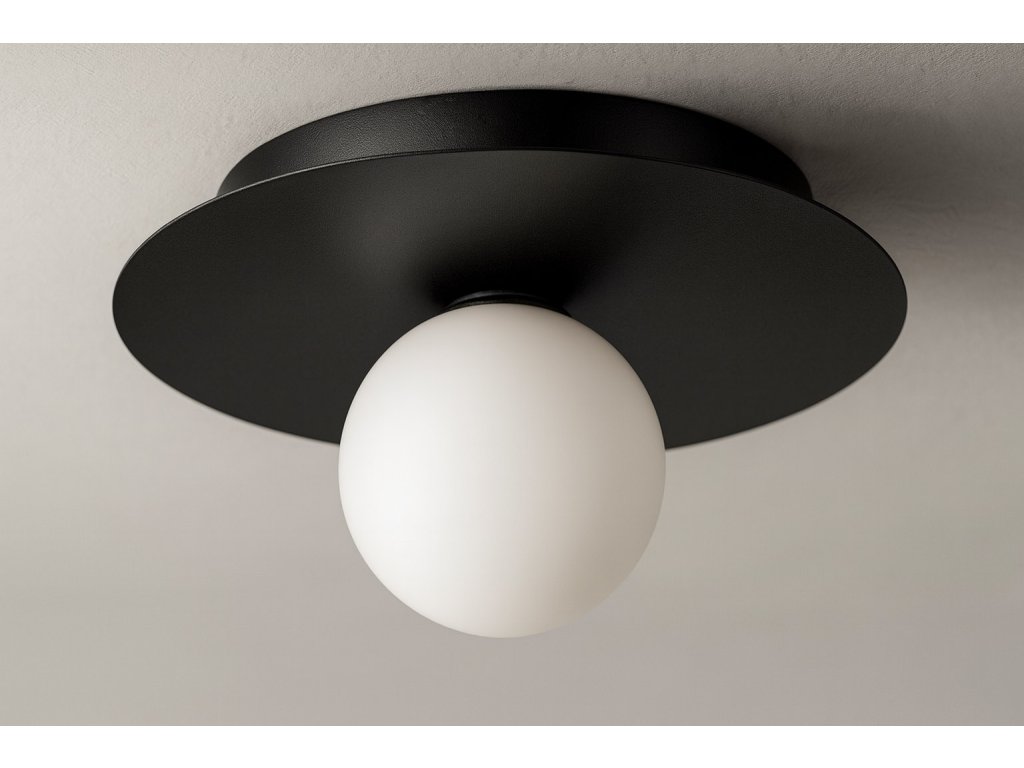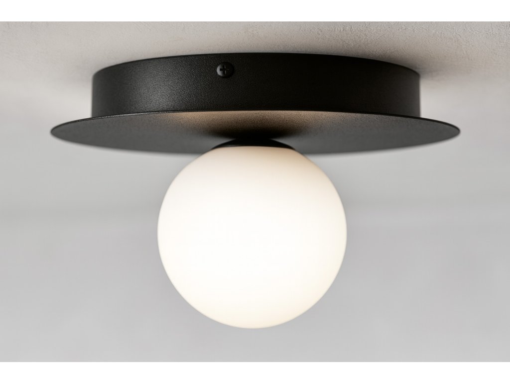 Černé stropní svítidlo s opálovou koulí na jednu LED žárovku G9
