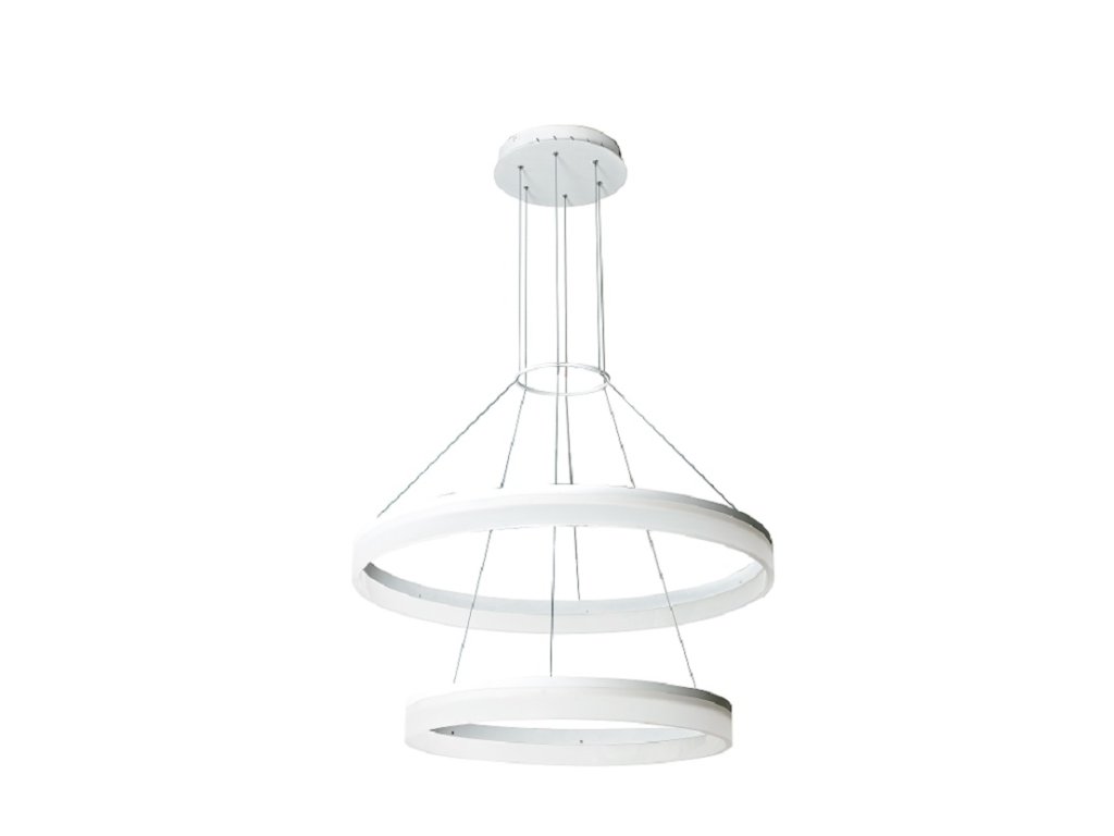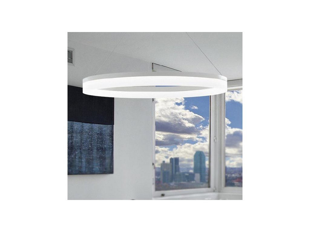 Závěsné osvětlení LED-SATURN-S80 s kruhovým akrylovým difuzorem bílé barvy.