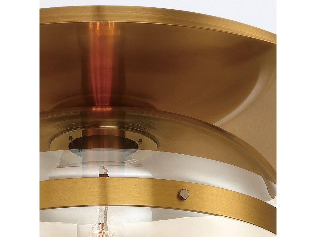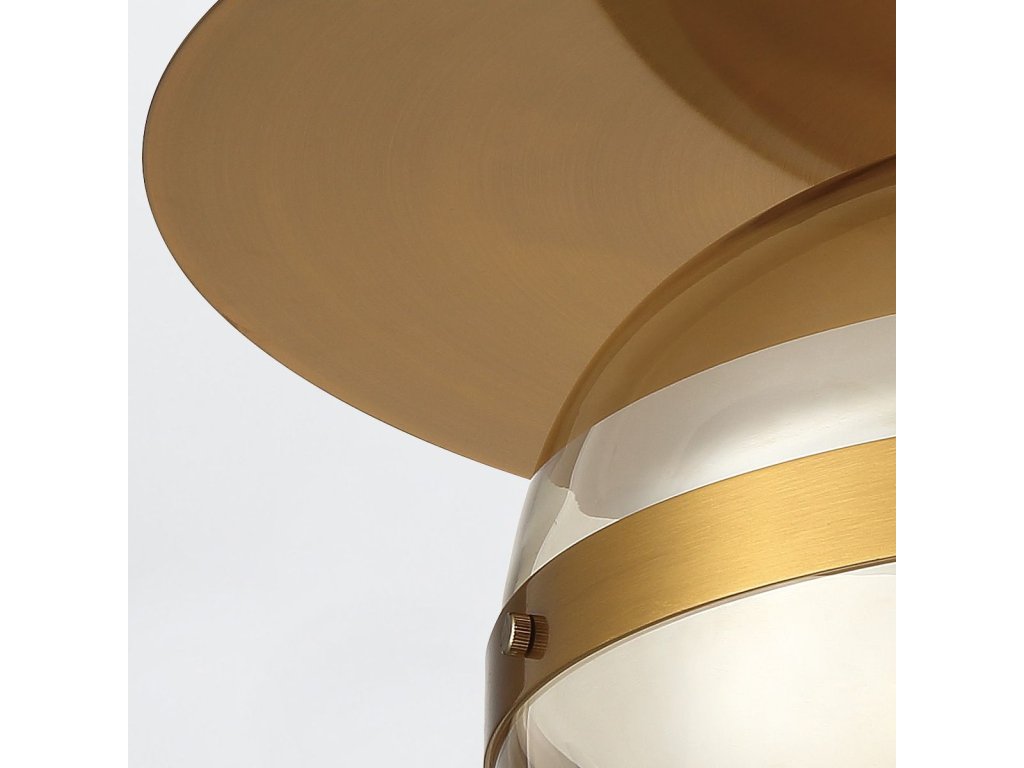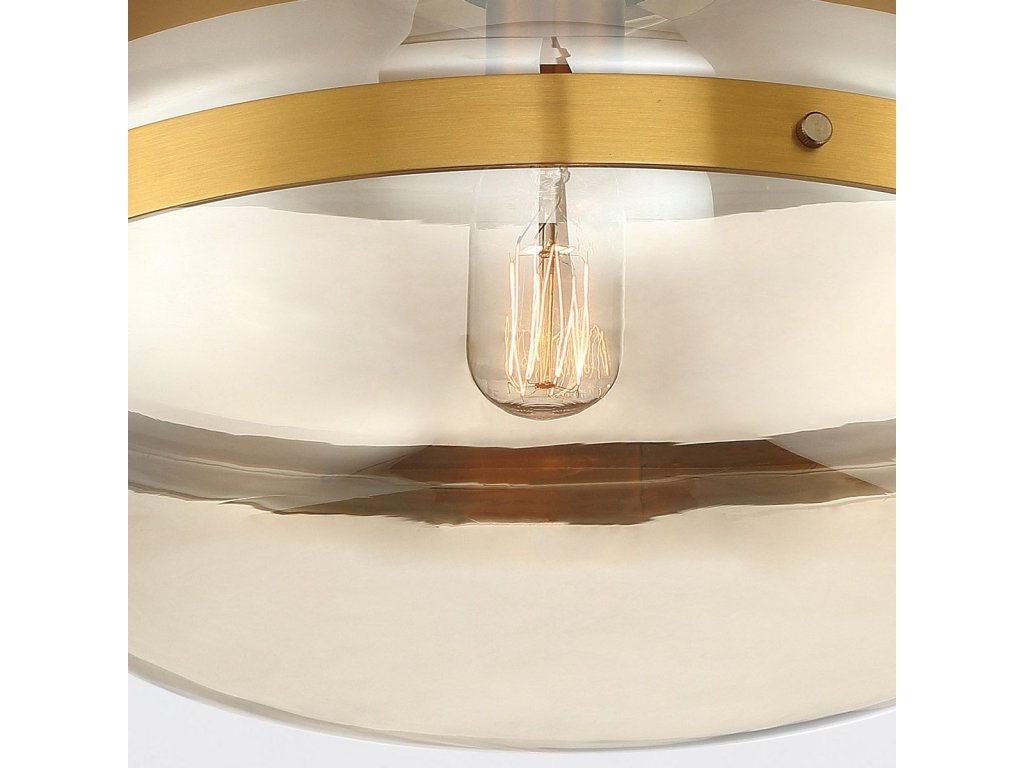 Stropní světlo NOTTINGHAM má kruhovou základnu o průměru 45,1 cm, která vytváří harmonický kontrast s netradičním stínidlem. Stínidlo z tónovaného jantarového skla je obepnuto elegantním kovovým páskem. Jde o zvláštní designový prvek, který přitahuje pozornost.