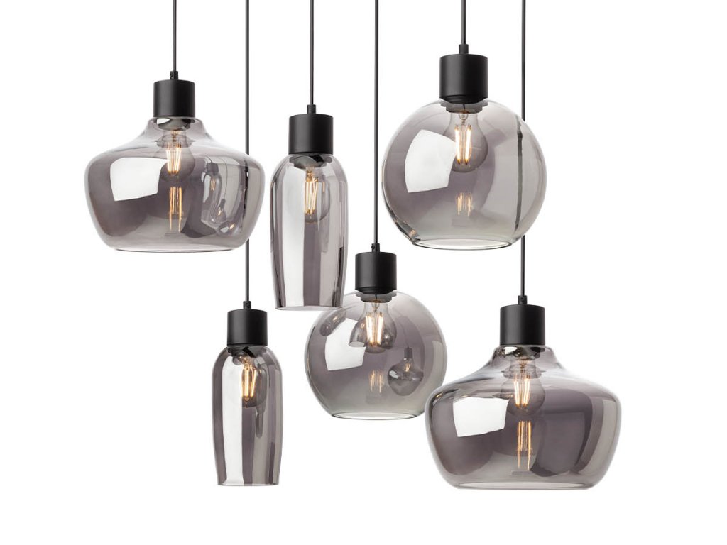 Designové závěsné světlo Smarter se stínidly z lesklého kouřového skla.