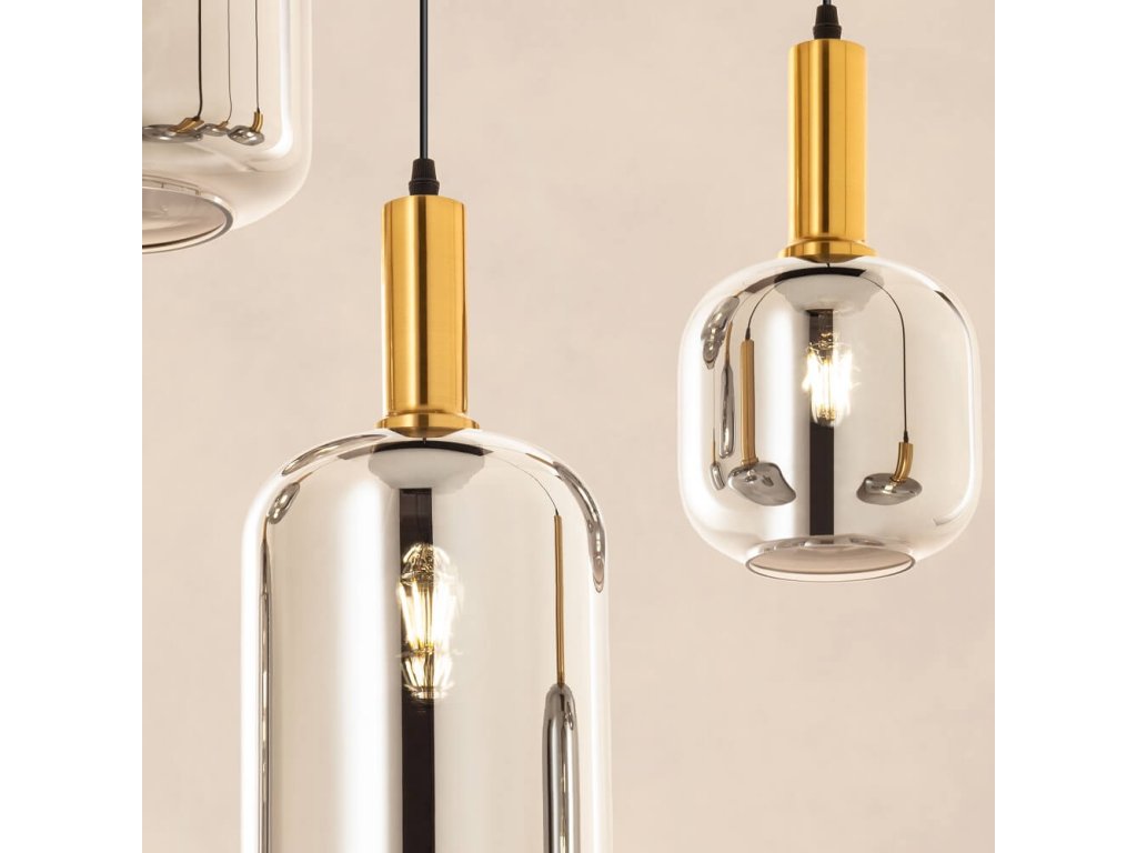Stylové závěsné světlo Smarter BRINA 01-3214 se stínidly z lesklého kouřového skla.