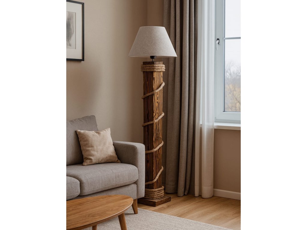 Osvětlete svůj prostor s jedinečnou dřevěnou stojací lampou z trámu. Elegantní a funkční doplněk, katrý přinese do vašeho interiéru přírodní krásu a styl. S výškou 175 cm je ideální pro obývací pokoje, ložnice, restaurace nebo hotelové interiéry.Toto mobilní osvětlení kombinuje přírodní krásu světlého dřeva s hrubým lanem a textilním širmem. V interiéru vytvoří příjemnou atmosféru pro výjimečné okamžiky i každodenní chvíle. Masivní lampa z kolekce Wood je ideální volbou pro ty, kdo chtějí vnést do svého domova teplo, čistotu a styl skandinávského designu.