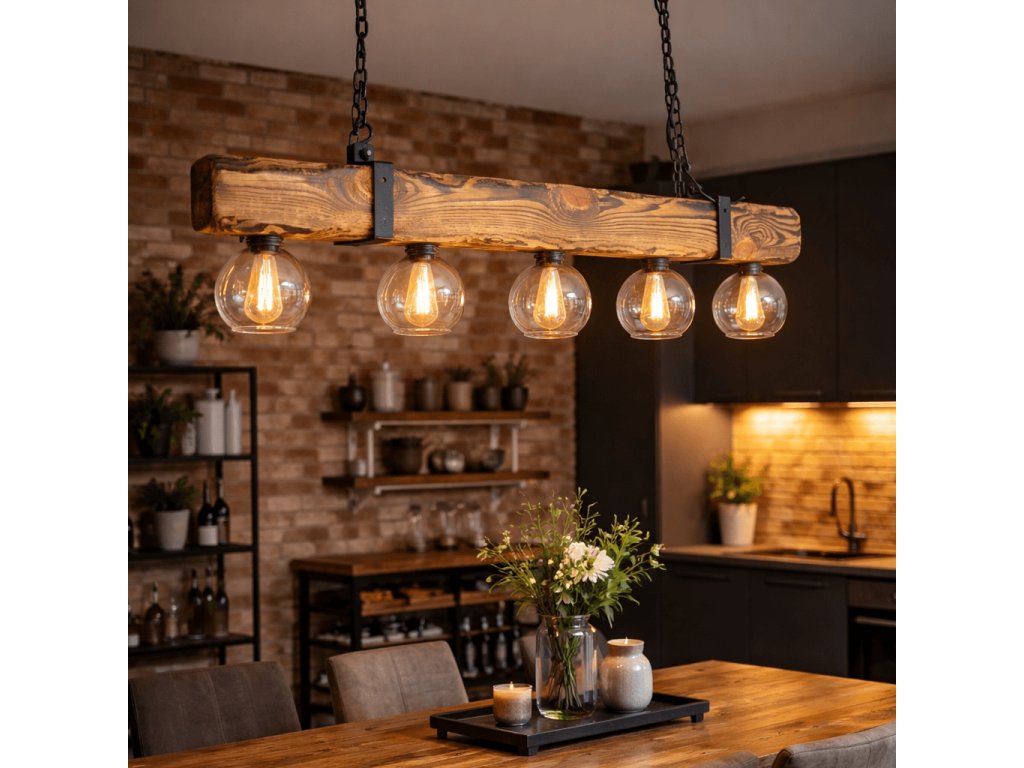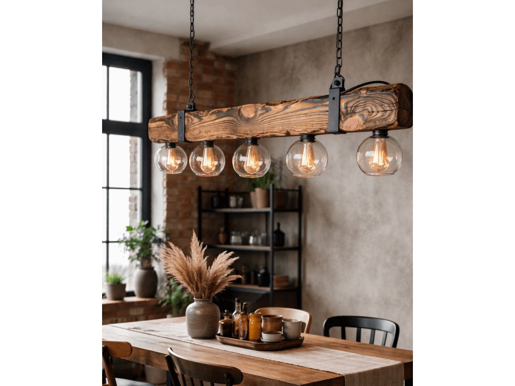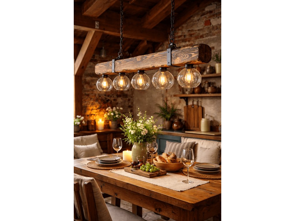 Trámový lustr RUSTIC Glass - vintage osvětlení do stylových rustikálních interiérů.
