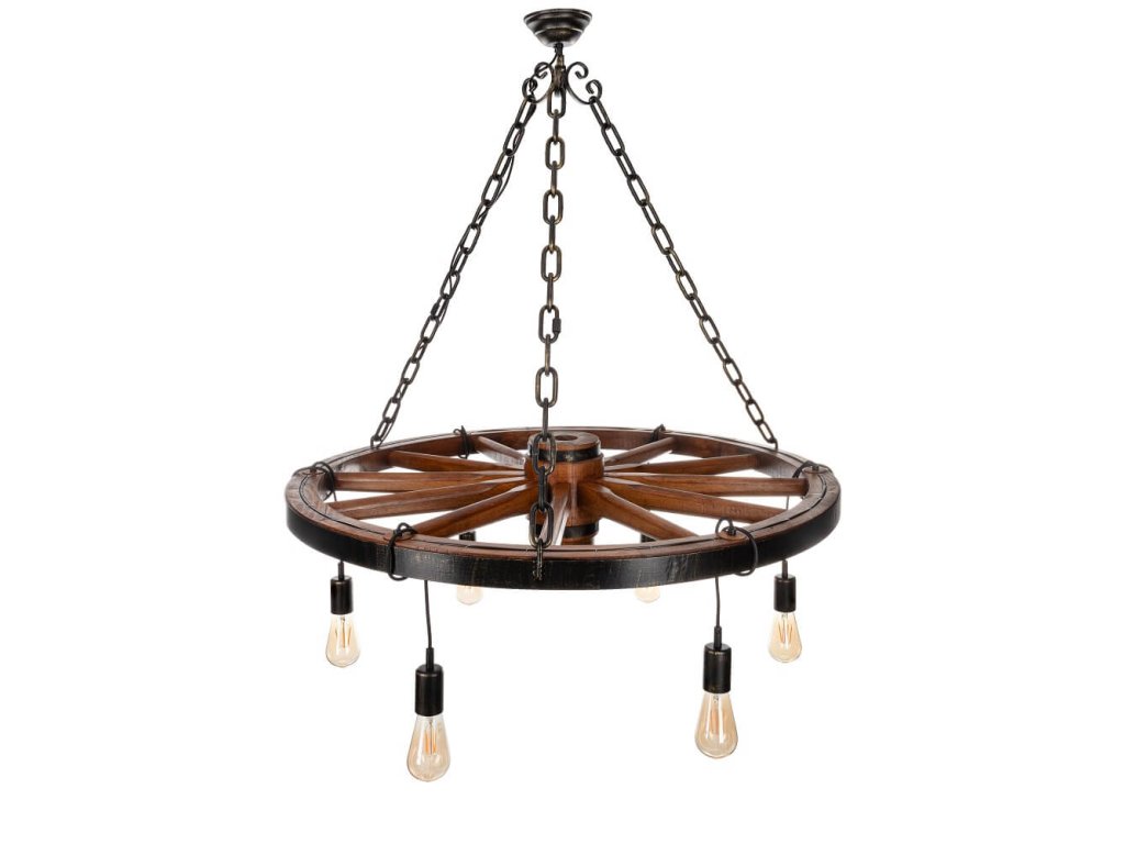 Jednotlivé objímky E27 jsou spuštěny na 50 cm kabelech s látkovým potahem. Kabely je možno obtočit kolem kola a spustit dolů dle vlastní potřeby. Světlo má typický venkovský vzhled a jeho tvary jsou inspirovány lidovou tradicí.