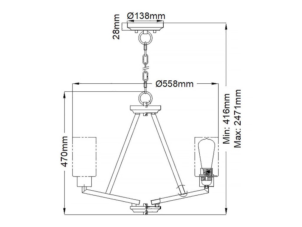 Řetěz je možné zkrátit. Díky univerzálnímu závěsu, můžete použít světlo i bez řetězu jako stropní variantu.