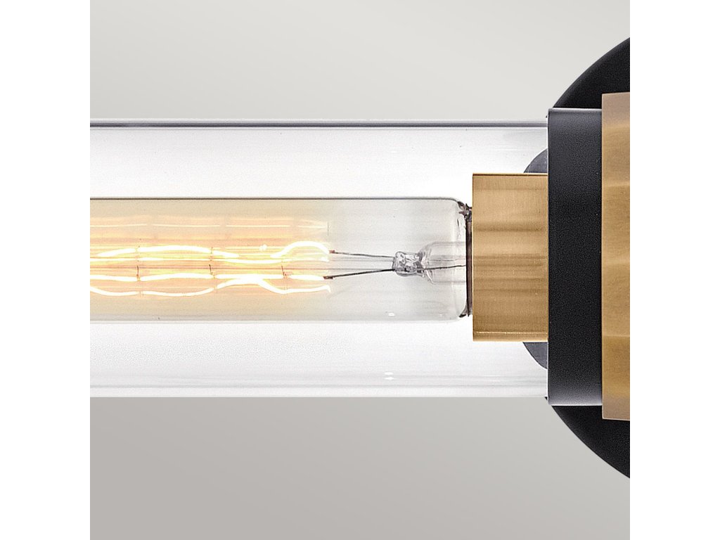 - Materiál: Kombinace černé oceli s doplňkem z kartáčované mosazi dodává svítidlu sofistikovaný vzhled.