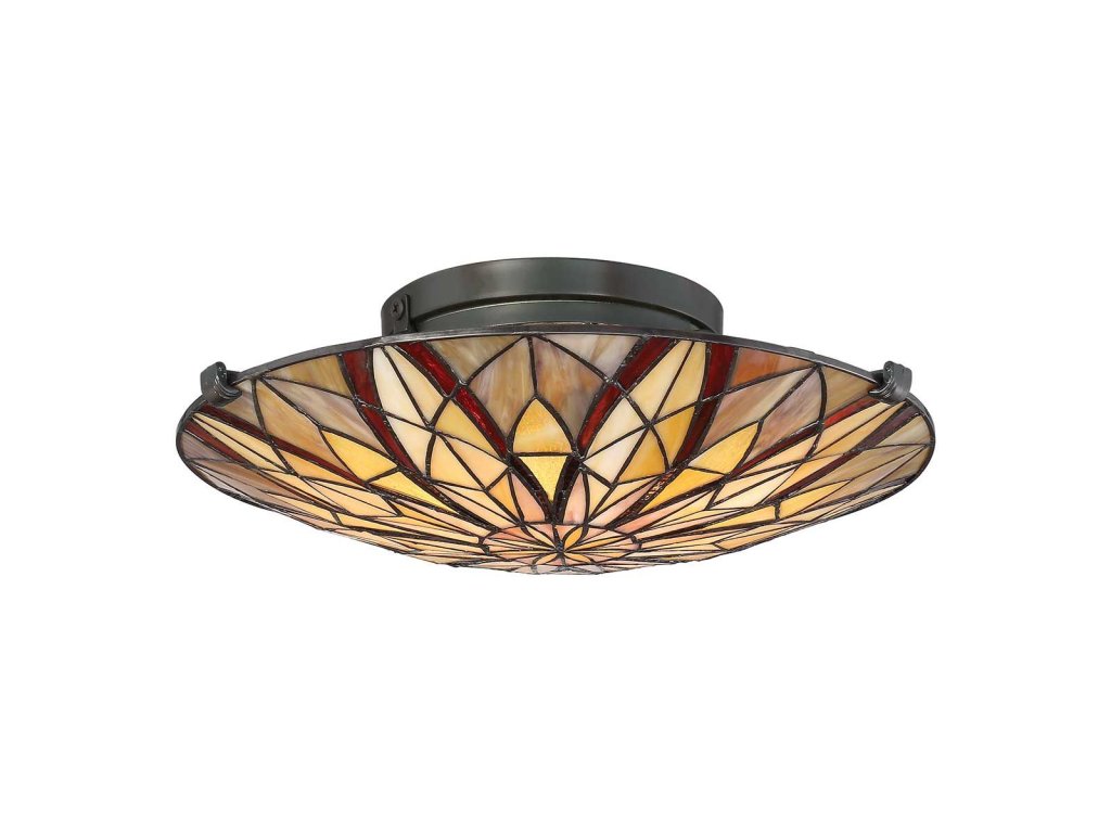 Luxusní vitrážové světlo na strop Quoizel Inglenook/výška 15,1 cm/průměr 40,7 cm