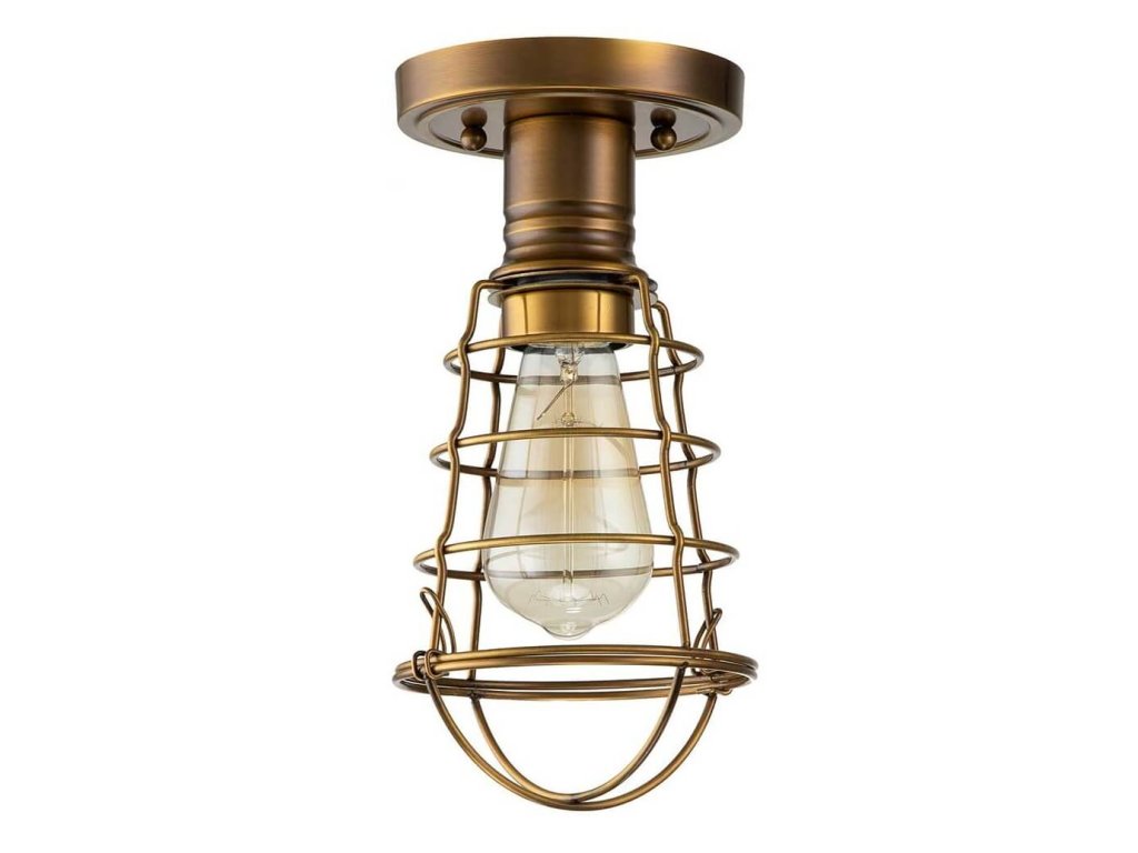 Industriální světlo z mosazi s mřížkou - na stěnu nebo strop s IP64/ průměr 17,5 cm