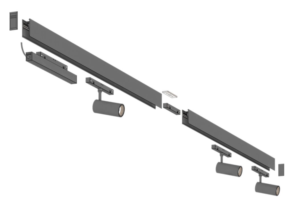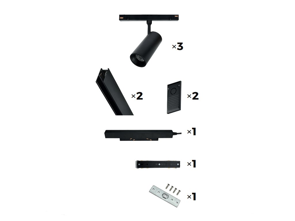 Po domluvě je možné také dokoupit rohovou spojku, svítidlo na 1F nebo set prodloužit o další kolejnice.