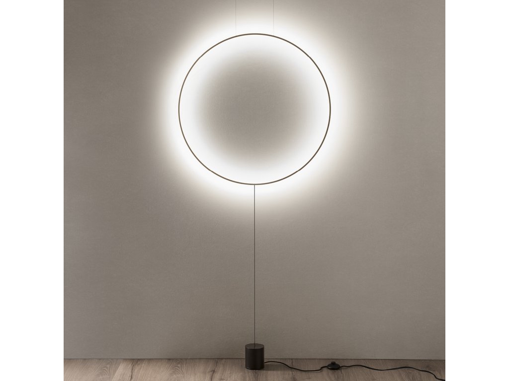 Světlo z kruhů svítí na stěnu, vhodné pro osvětlení obrazů nebo dekorací.