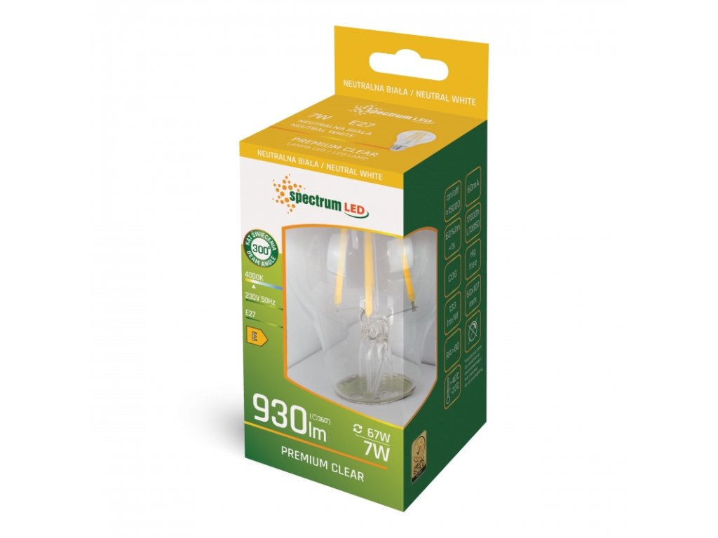 Filamentová žárovka s paticí E27/LED 7W je náhradou za klasický zdroj 75W s teplotou světla 4000K.