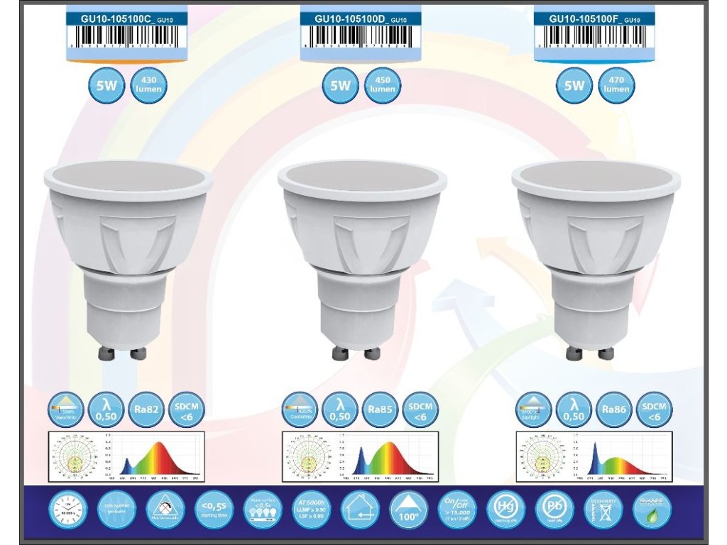 Specifikace: 5W - GU10 - 230V