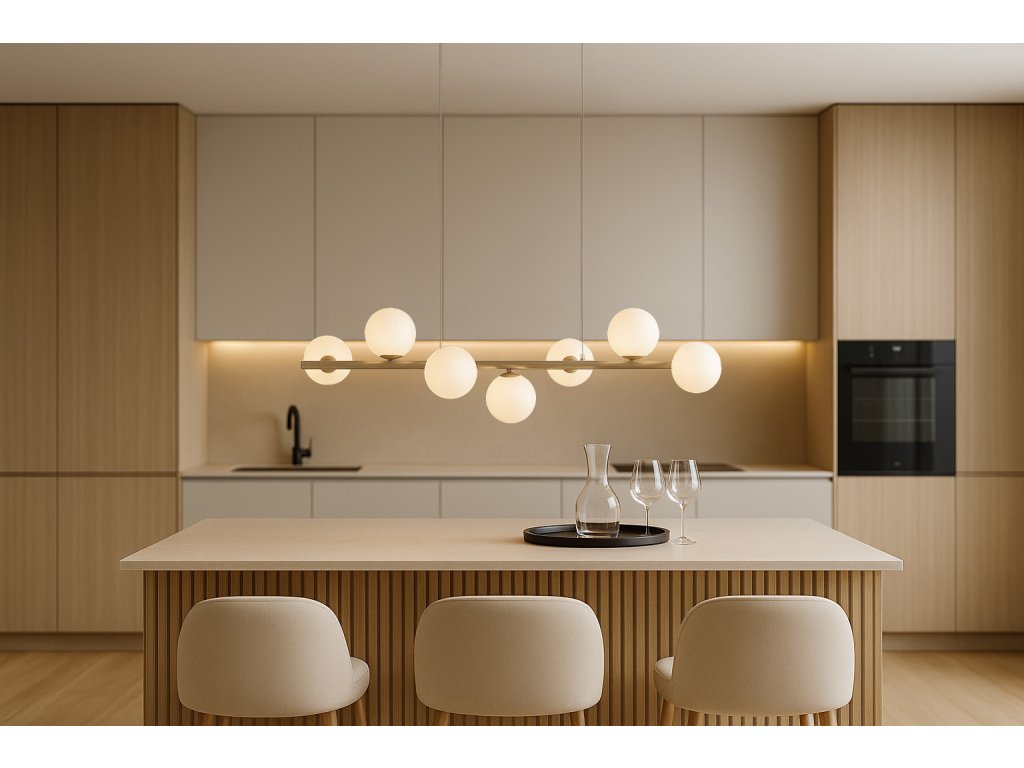 Moderní svítidlo s bílými koulemi ARDI - stylový prvek do kuchyně, jídelny nebo obýváku.