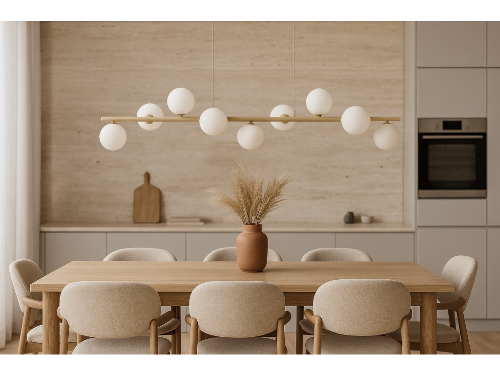 Moderní svítidlo s bílými koulemi ARDI - stylový prvek do kuchyně, jídelny nebo obýváku.