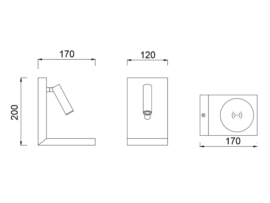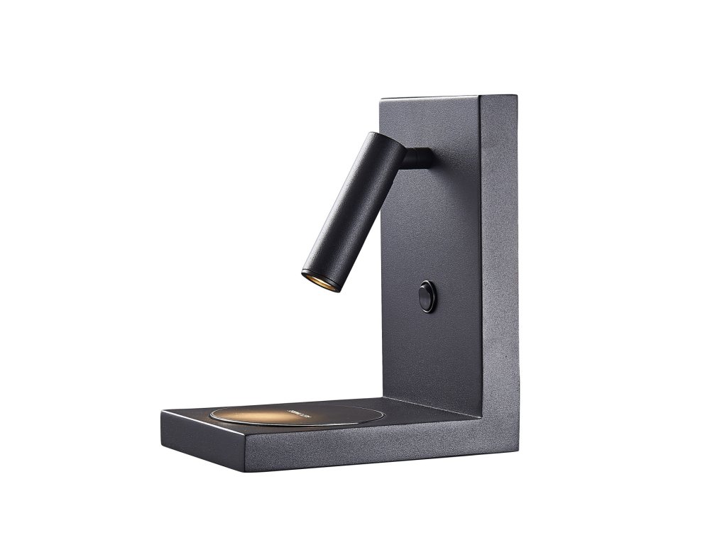 Nástěnné LED svítidlo k posteli s bezdrátovou nabíječkou v černé barvě Mantra ZANZIBAR 6752.