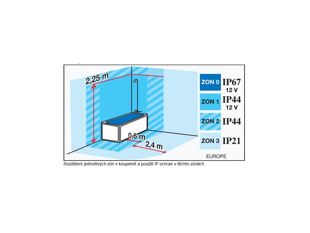 Vhodné k umístění nad zrcadlo. V montuře je i drážka k uchycení.