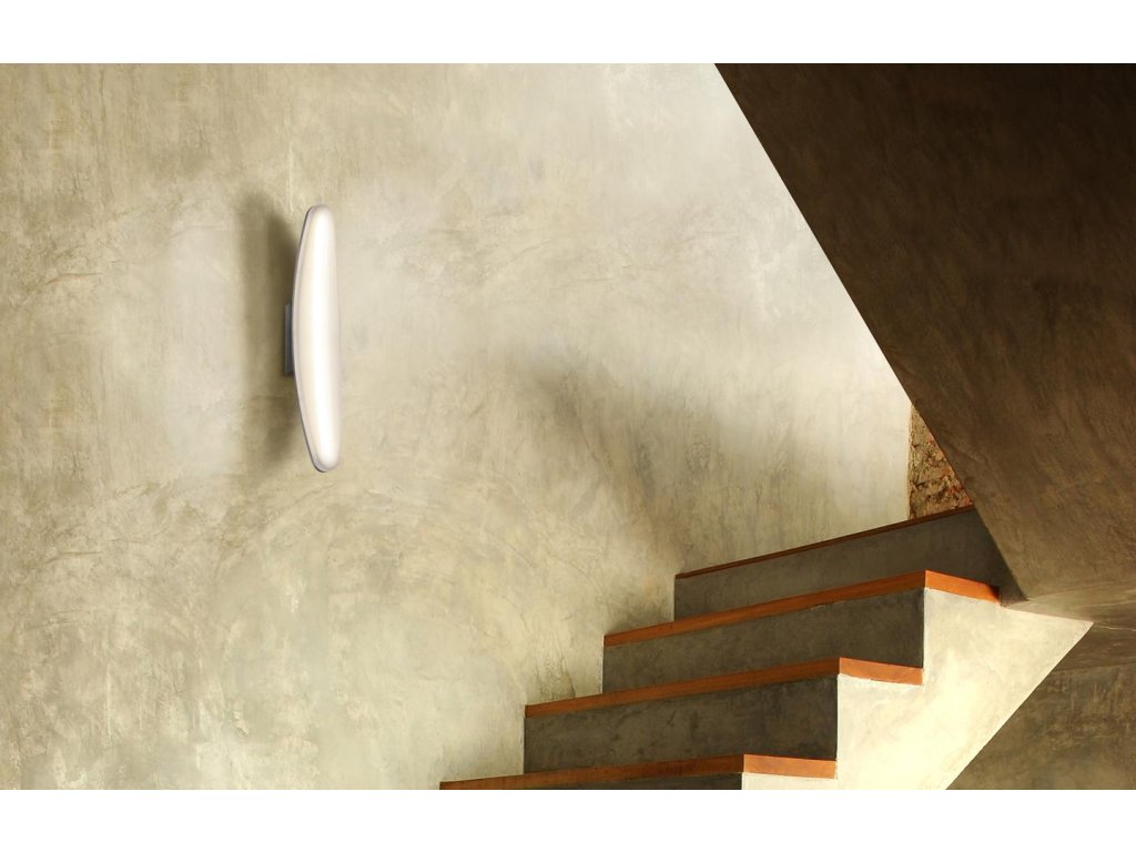 Designové nástěnné svítidlo je vyrobeno z hliníku a bílého akrylátu.
