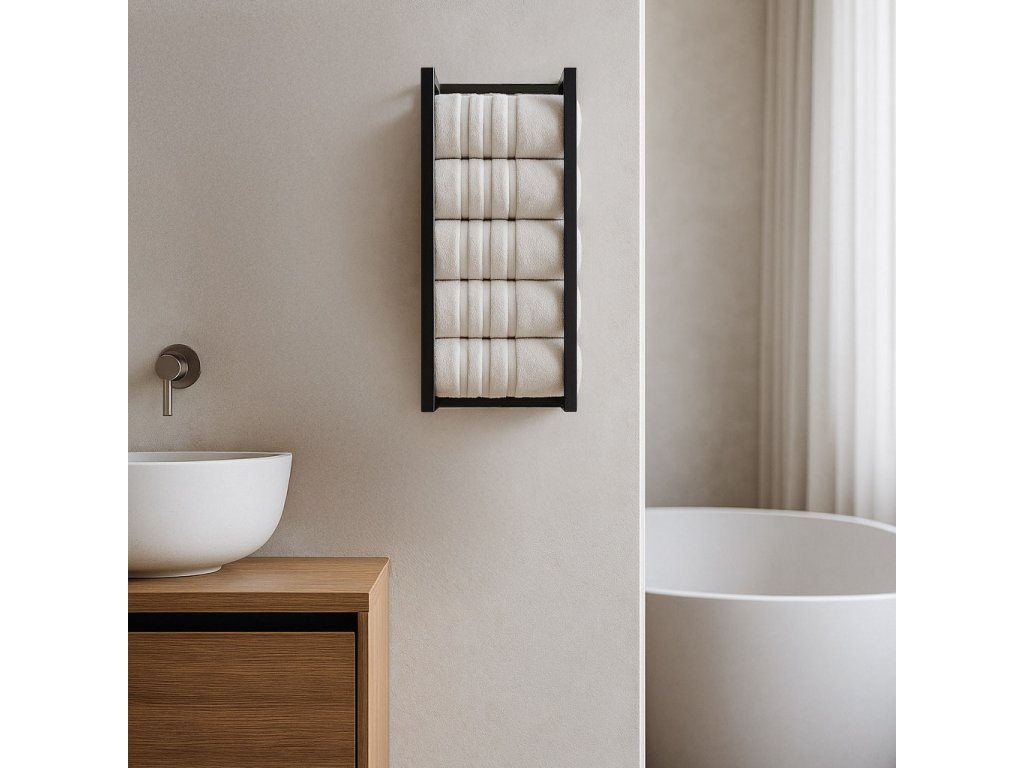 Nástěnný držák na ručníky KS-48 černý 50x25x15 cm