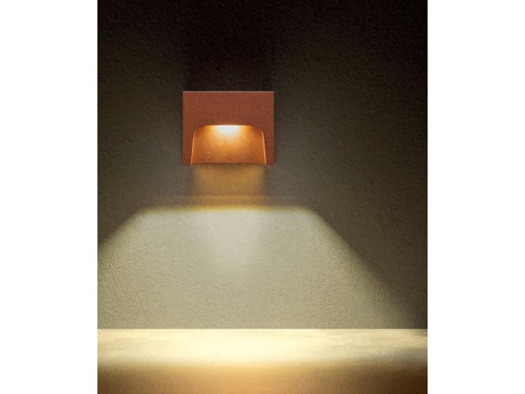 LED zdroj COB 9W s teplou bílou barvou světla 3000K je pod skleněným krytem v plochém těle. Směřuje proud světla pouze dolů a neoslňuje tak okolí. - Montáž: Svítidlo se montuje přímo na fasádu a nepotřebuje vlastní instalační krabici.