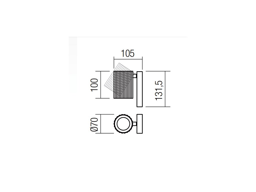 Pohyblivá bodovka pro patici GU10. Ovládání svítidla je zajištěno vypínačem umístěným na přední straně.