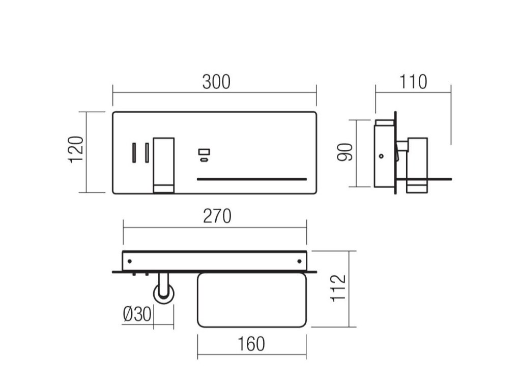 Redo Brook je nástěnné svítidlo nad postel s poličkou do ložnice, dětského nebo hotelového pokoje.