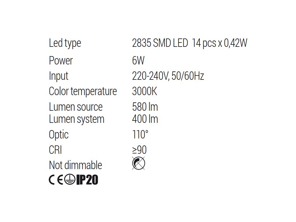 ? Příkon LED bodovky: | LED 6W 400 lm |