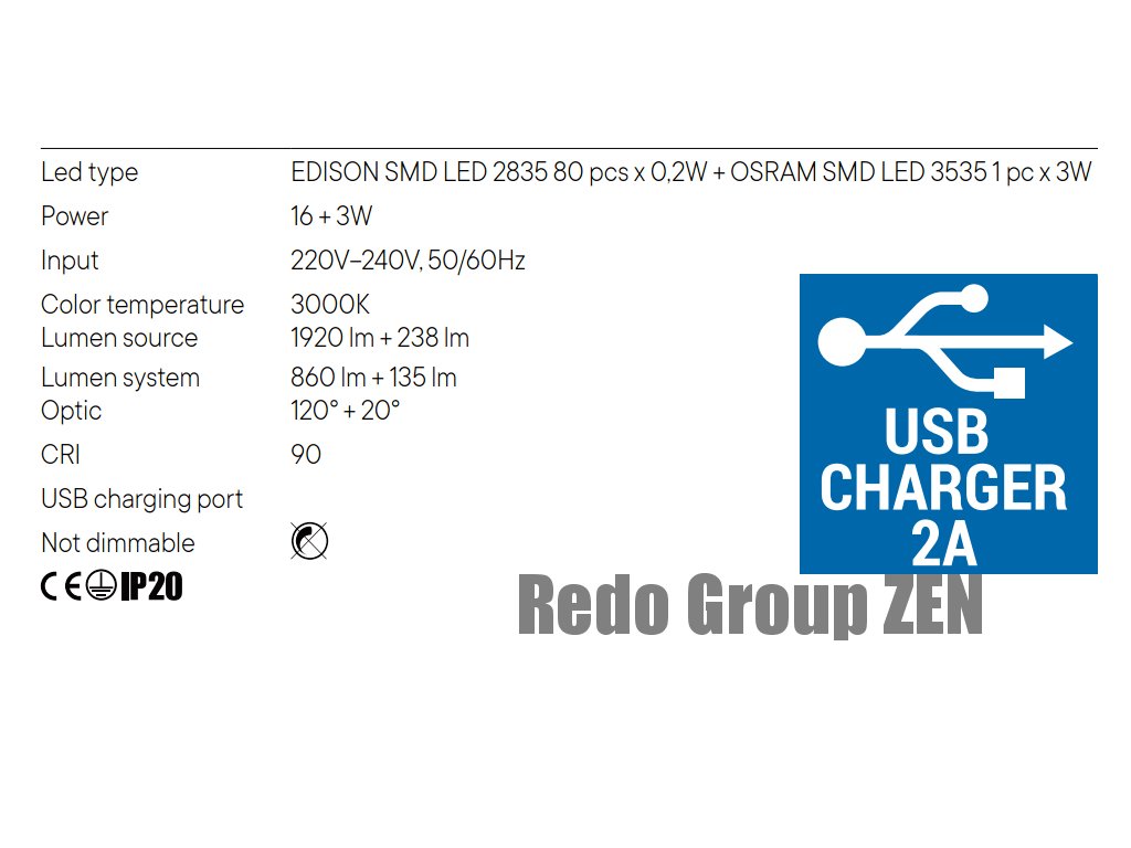 Redo Group ZEN lampa nad postel s USB LED 16W +3W antický bronz