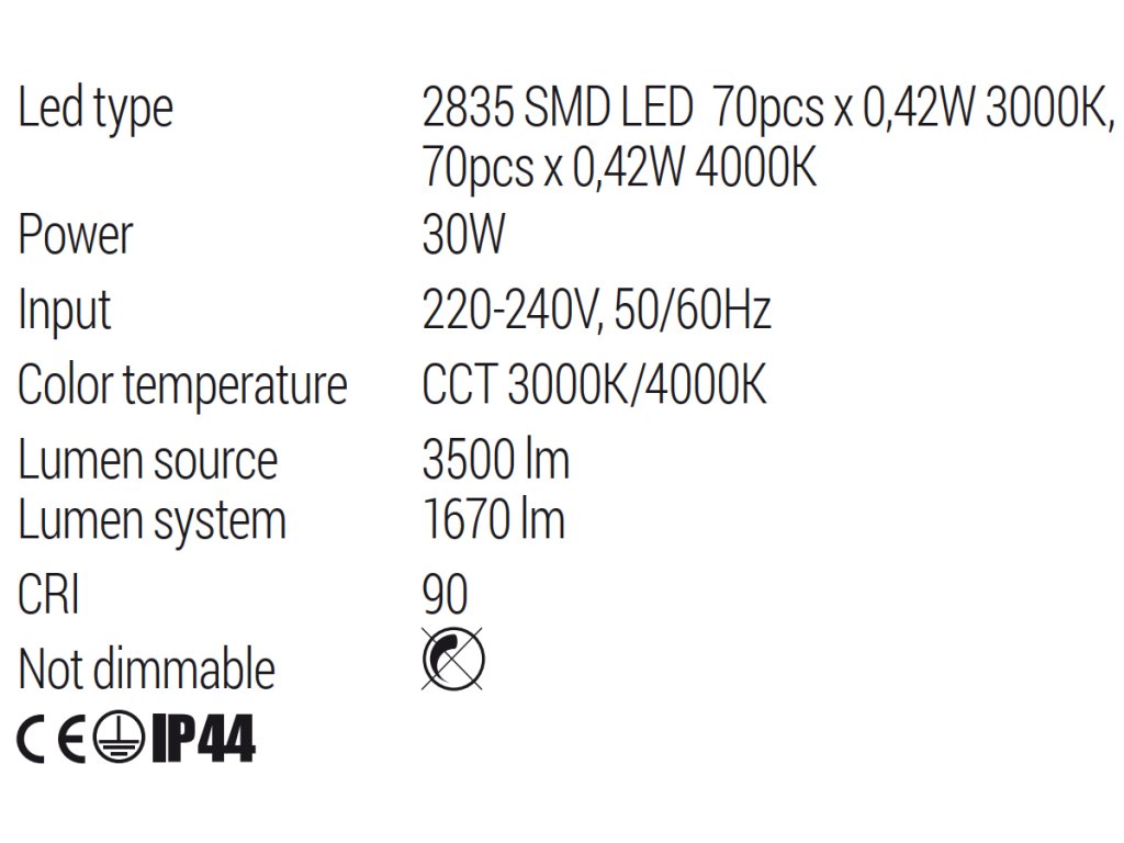 - Barvy světla: dle výběru před montáží 3000K (teplé bílé) - 4000K (neutrální bílé)