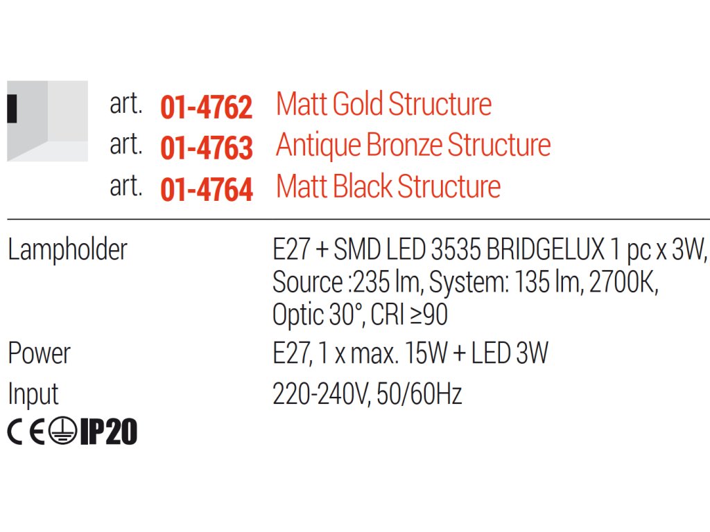 - Vhodná LED žárovka: Jako hlavní světlo doporučujeme LED zdroj E27 s maximálním příkonem 15W.
