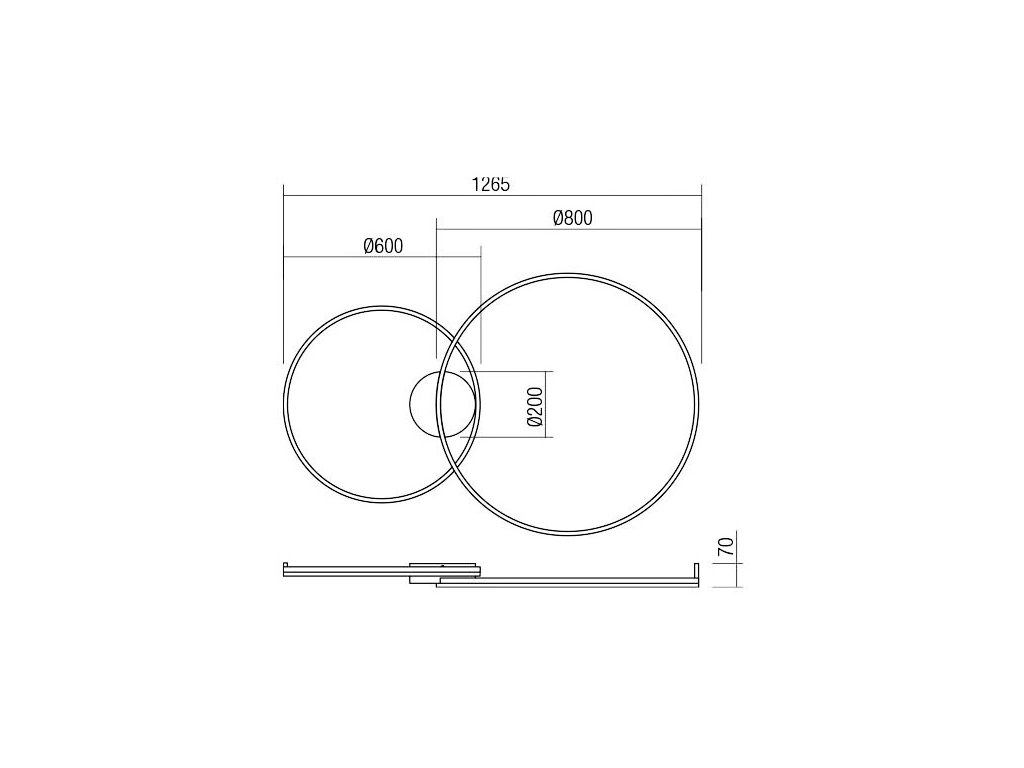 - Design: Futuristické světlo se spojenými kruhy o průměru 80 cm a 60 cm.