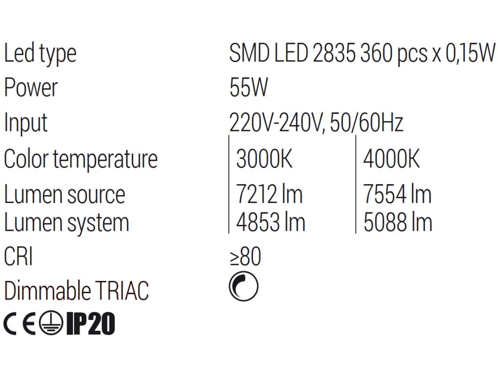 - Příkon: 55W/4853 lm – úsporné a výkonné LED