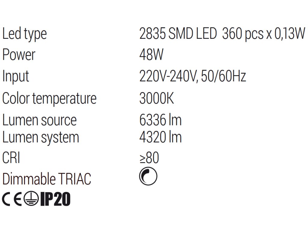 Výkon: 48W/4320 lm – energeticky úsporné LED osvětlení.