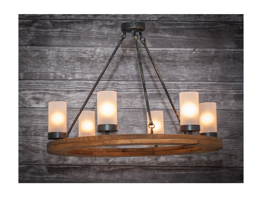 Rustikální závěsné osvětlení DT-K-50-6K vhodné do stylových roubenek/ průměr 50 cm