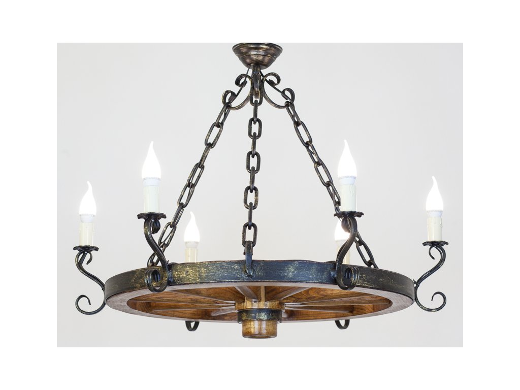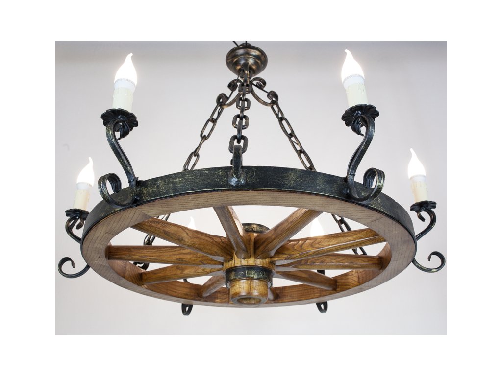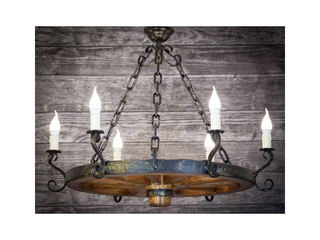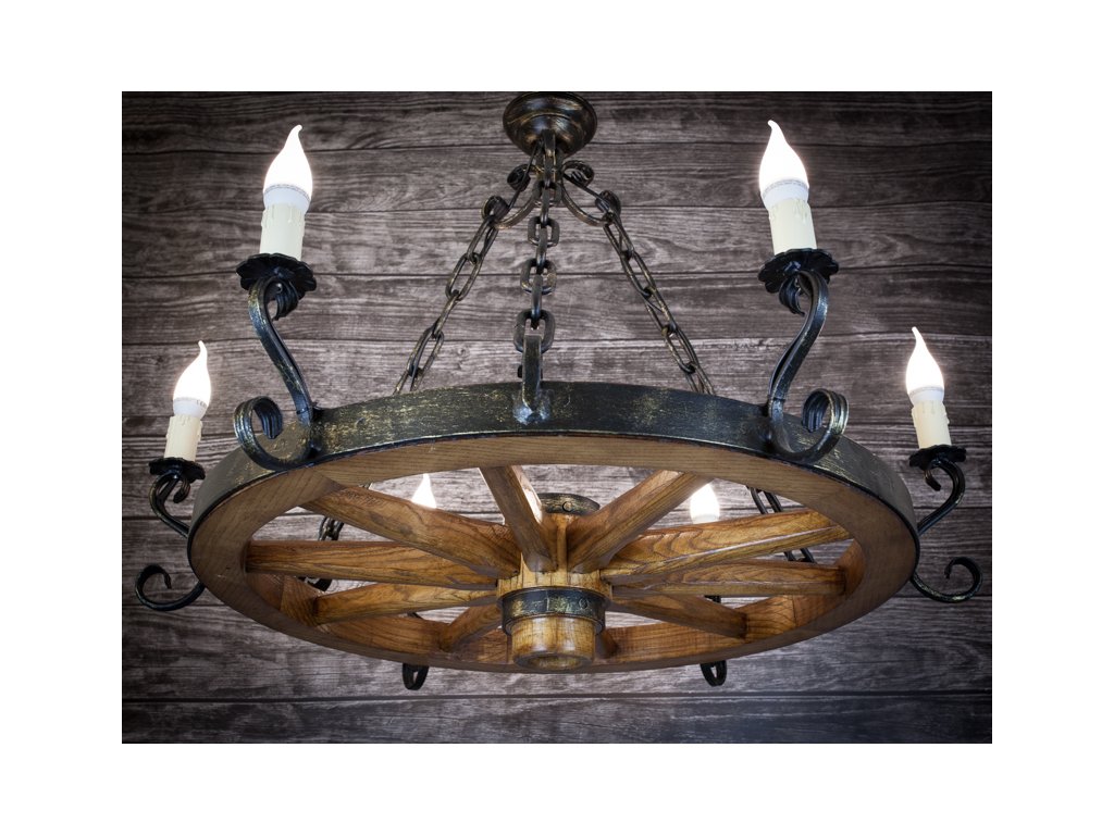 Rustikální lustr ze dřeva Kolo DT-Ko-70-6S