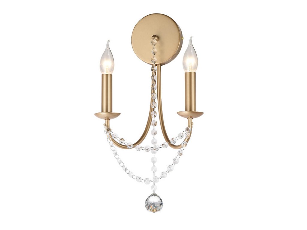 Tělo svítidla je v matné zlaté barvě. Ozdobné ověsky jsou z broušeného skla.