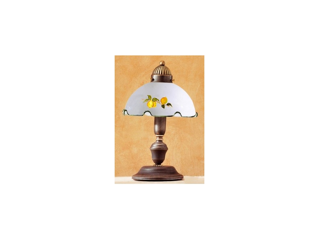 Rustikální stolní lampa ze série NONNA vás uchvátí pečlivě propracovanými kovovými prvky v barvě staré mosazi, které mají velmi elegantní vzhled a malovaným stínidlem ze skla nejvyšší jakosti.