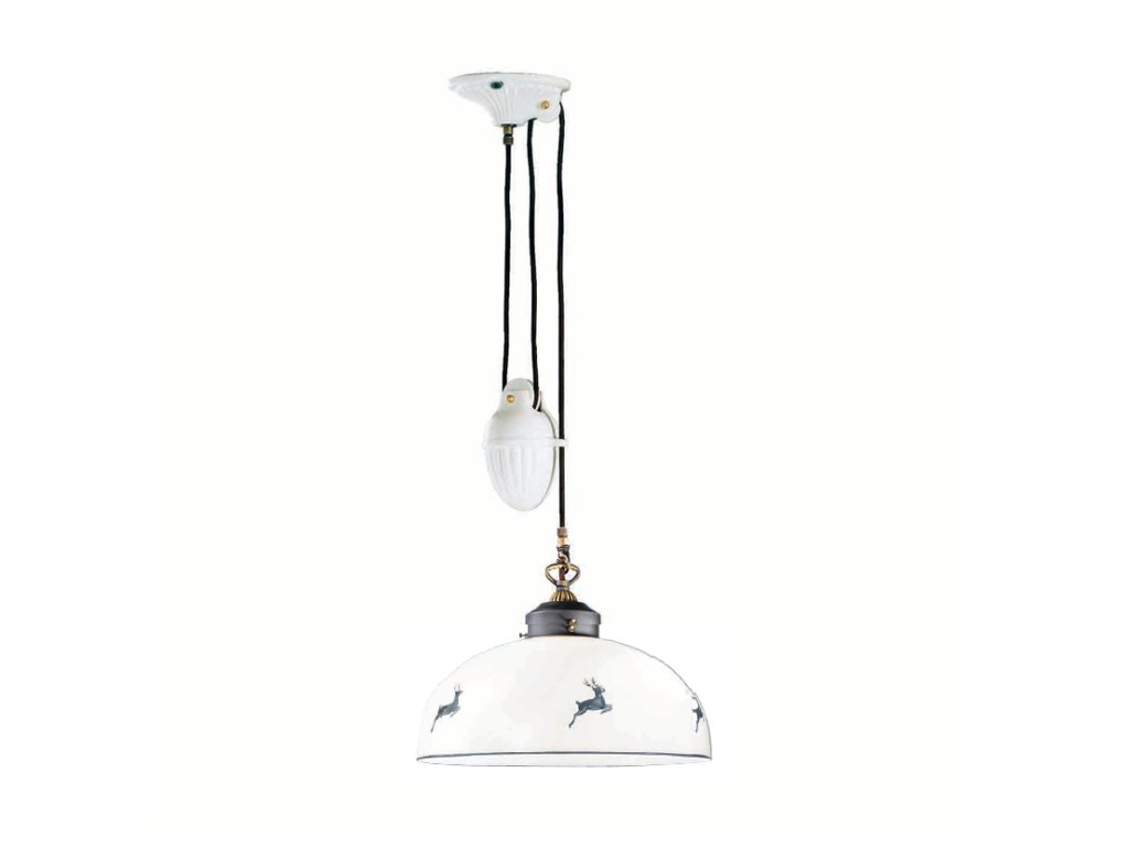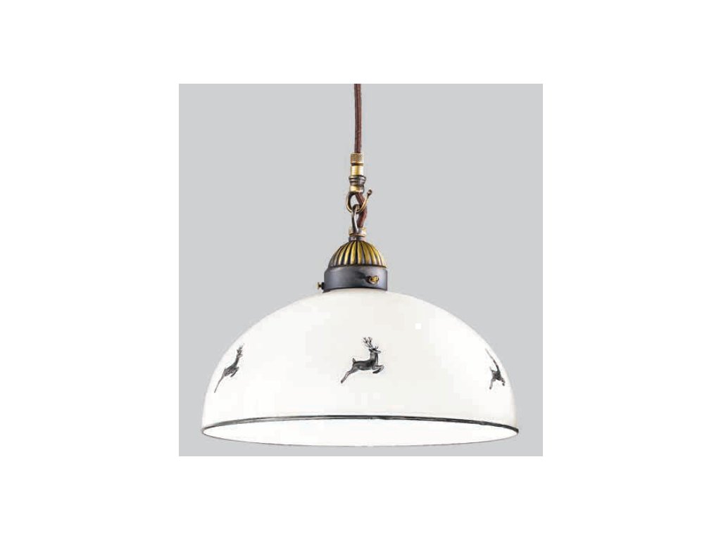 Skleněné stínidlo nejvyšší jakosti je ozdobeno okouzlujícími dekoracemi v podobě skákajícího jelena a spodní linie.