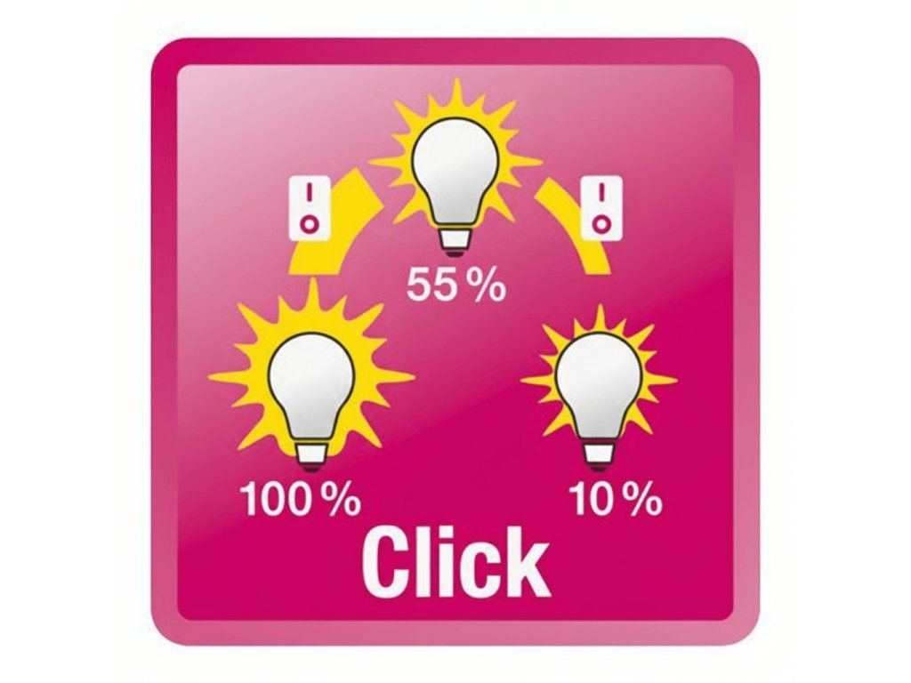 - Tří-krokové stmívání je zde možné ovládat jednoduše klasickým vypínačem na stěně nebo stolní lampě.