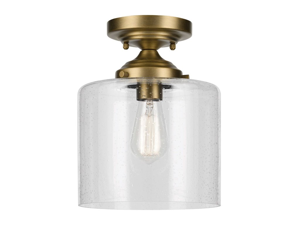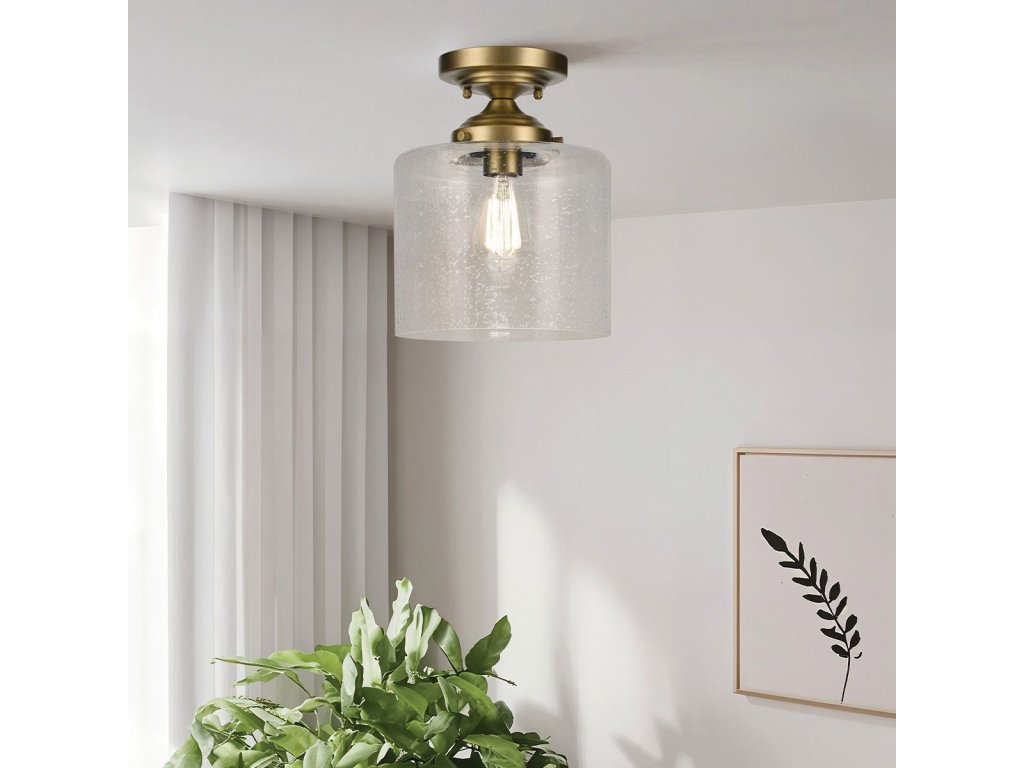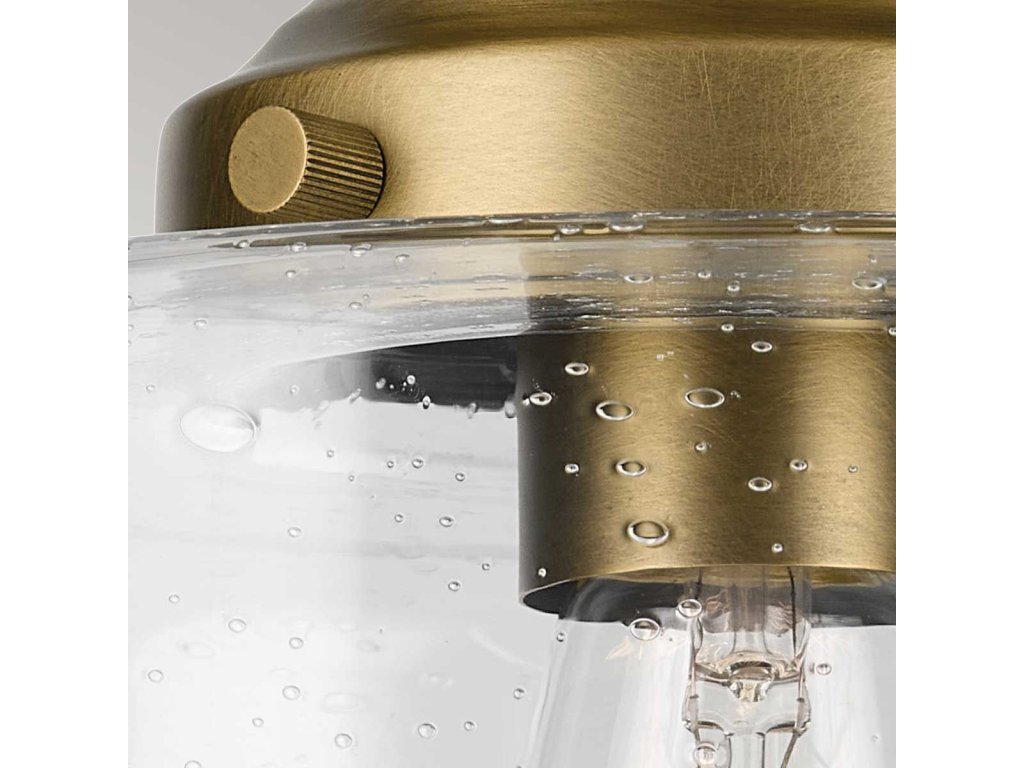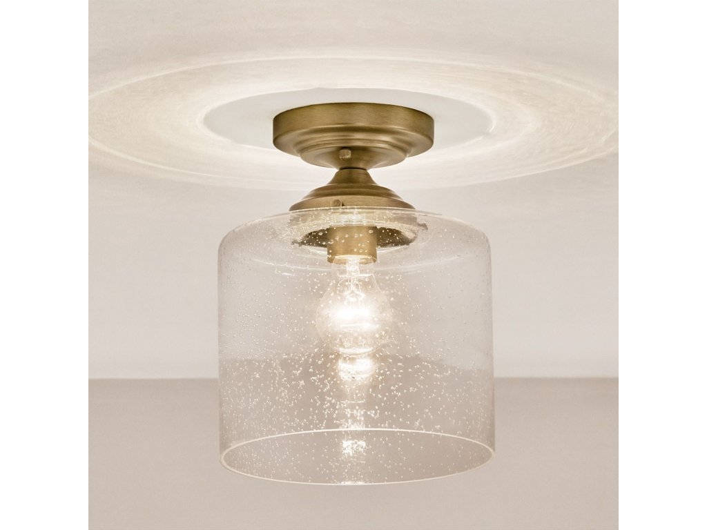 Stropní osvětlení Kichel Winslow v barvě přírodní mosazi s čirým bublinkovým sklem.