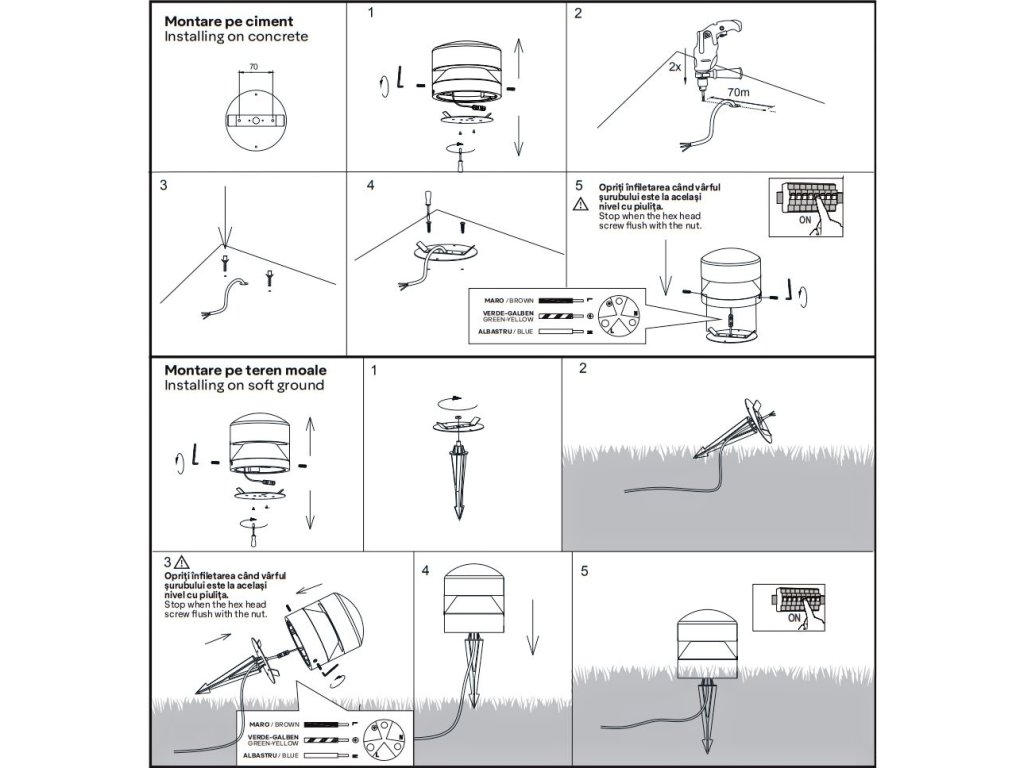 - Instalace: Rychlá a snadná montáž přiloženou sadou pro pevné povrchy nebo se zápichem do trávy.