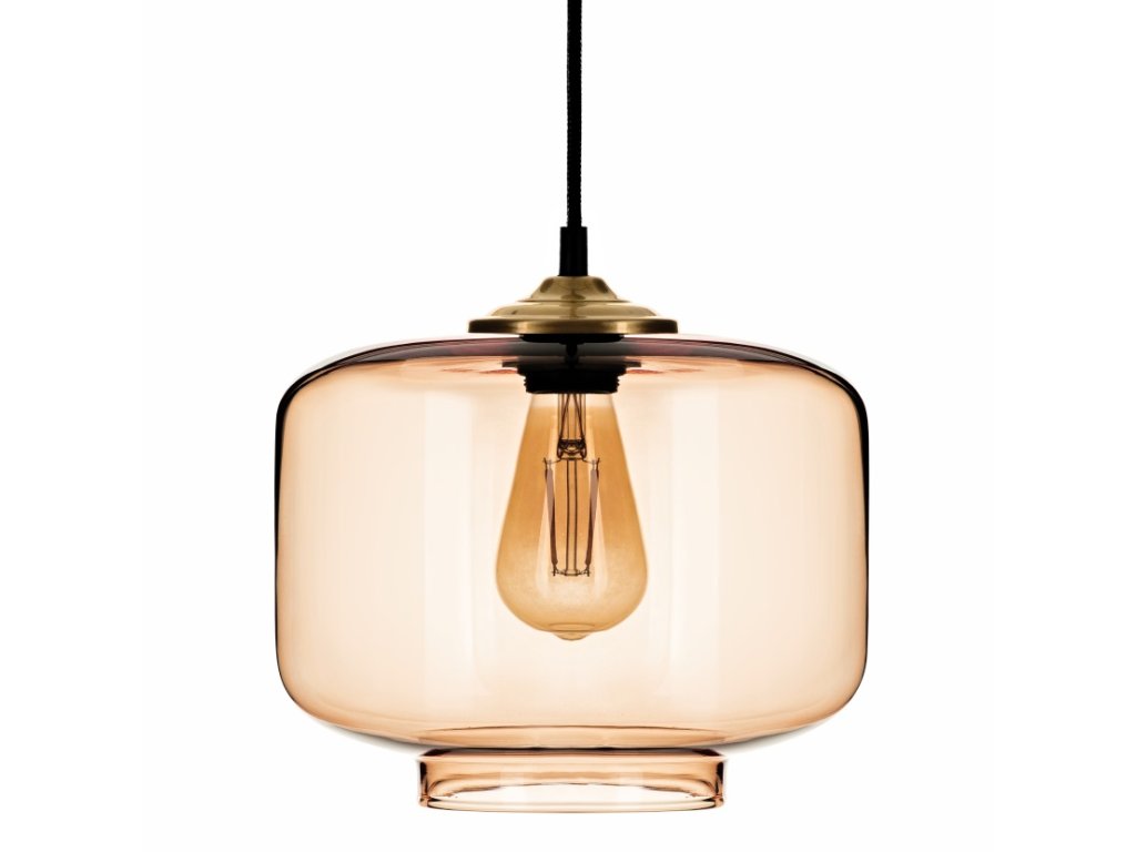 Kouřové sklo a jednoduchý závěs s mosazným doplňkem tvoří stylové svítidlo Bulgy L-2027.