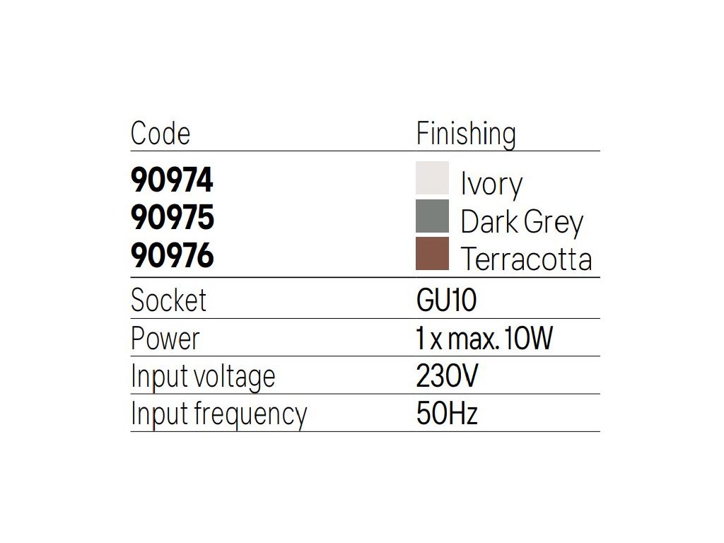 - Materiál: Tělo svítidla je vyrobeno z kvalitního betonu v barvě slonové kosti, tmavě šedé nebo terakotové. Zajišťuje odolnost vůči povětrnostním vlivům.