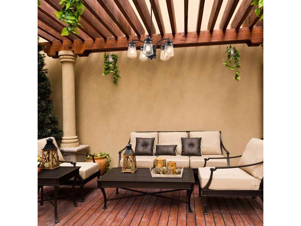 Venkovní lustr do pergoly Elstead LYNDON IP44 5×E27 hnědá barva