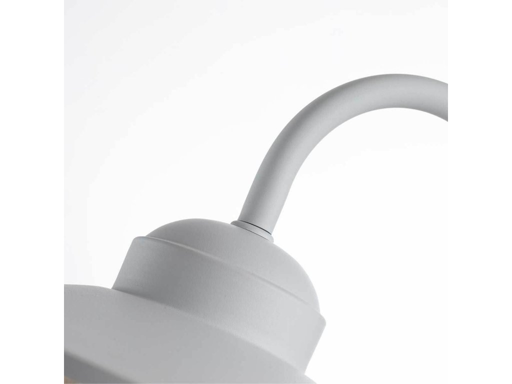 Stínidlo, rameno i základna jsou v bílé matné barvě. Difuzor je z čirého foukaného skla.