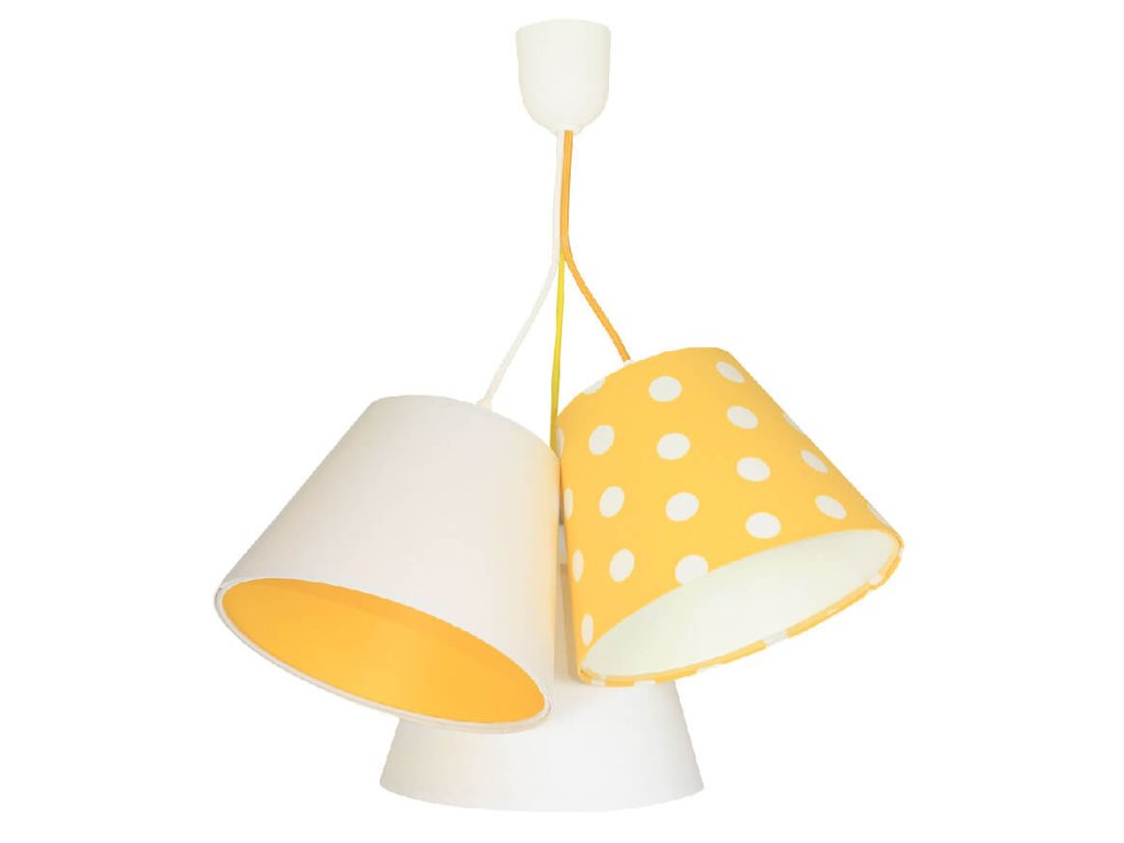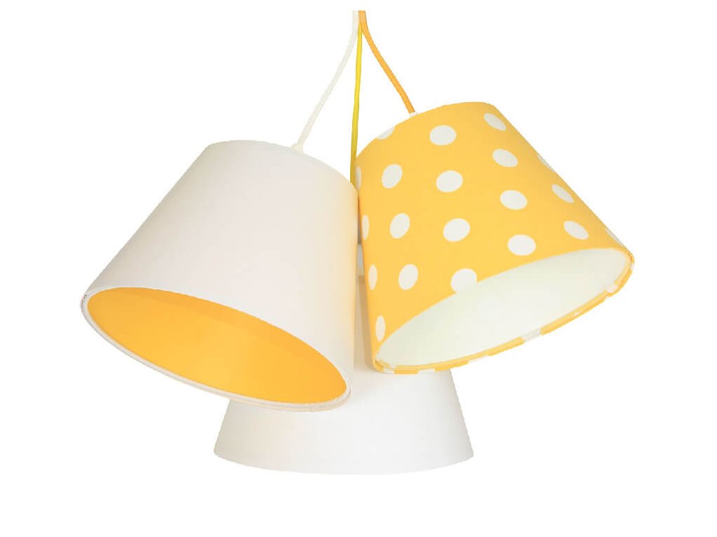 Kabelem spojená stínidla mají různé kombinace ve žluté a bílé barvě.