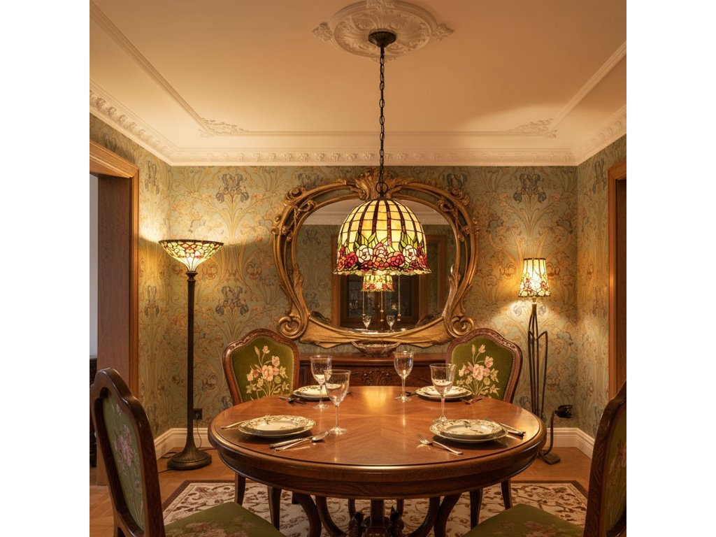 - Umělecký prvek: Tiffany styl přidává do prostoru uměleckou hodnotu a stává se výrazným dekorativním prvkem.