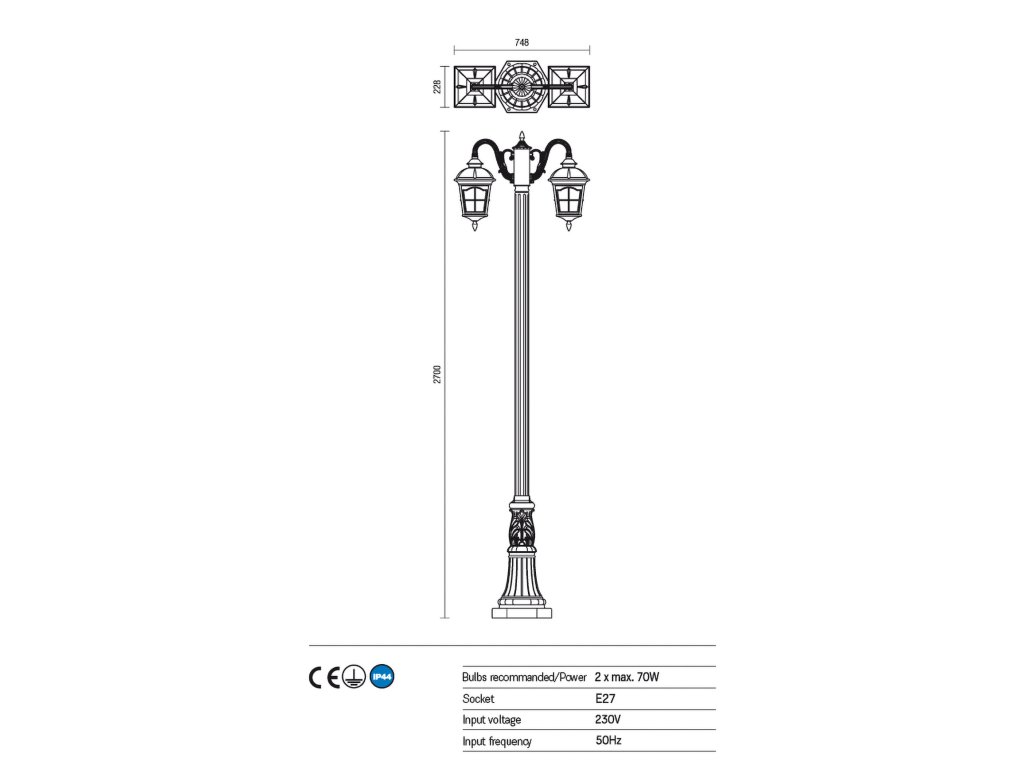 Venkovní sloupové osvětlení s IP44 YORK 9655 z katalogu REDO GROUP 2019 je vysoké 2,7 m.
